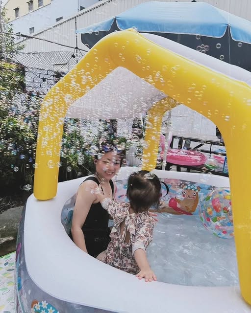平常我們幫沐沐洗澡的時候,她偶爾也會因為好玩把水倒在我腳上,但不會故意潑水。